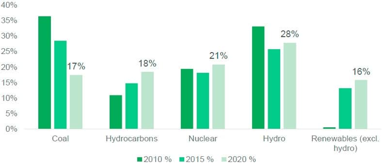 Un aspect crucial al cercetării este impactul asupra mediului și procesul de decarbonizare. Sectorul energetic rămâne principala sursă de emisii de dioxid de carbon, depășind agricultura și managementul deșeurilor. Cu toate acestea, progresul este evident: emisiile de gaze cu efect de seră au scăzut cu peste 50% față de nivelul anilor 1990, în mare parte datorită reducerii activităților industriale și adoptării unor politici de mediu mai stricte. Producția de electricitate din surse eoliene a ajuns la 12,4%, cea solară fotovoltaică la 3,4%, în timp ce energia hidroelectrică contribuie cu 27,6%. Energia nucleară rămâne, de asemenea, un pilon de tranziție extrem de important, oferind o contribuție constantă de aproximativ 30-33% din mixul energetic național.