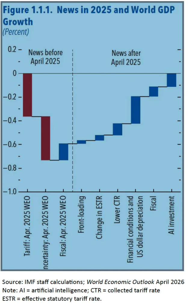 În urmă cu aproximativ un an, au existat avertismente similare privind riscurile de scădere economică generate de posibilele șocuri provocate de administrația americană. Argumentul central de atunci susținea că instabilitatea din Statele Unite ale Americii va afecta în mod inevitabil restul lumii prin tarife vamale ridicate, reduceri masive ale cheltuielilor guvernamentale și o incertitudine politică generalizată. Se anticipa că aceste presiuni vor lăsa o economie mondială fragilă fără nicio marjă de eroare, plasând-o exact la pragul recesiunii. Totuși, acele previziuni s-au dovedit a fi o alarmă falsă, deoarece creșterea globală în 2025 a fost mai robustă decât se estimase inițial. Lumea a învățat să facă față retoricii politice agresive, iar investițiile masive în centrele de date pentru inteligența artificială au susținut cheltuielile de capital, compensând slăbiciunea pieței forței de muncă.