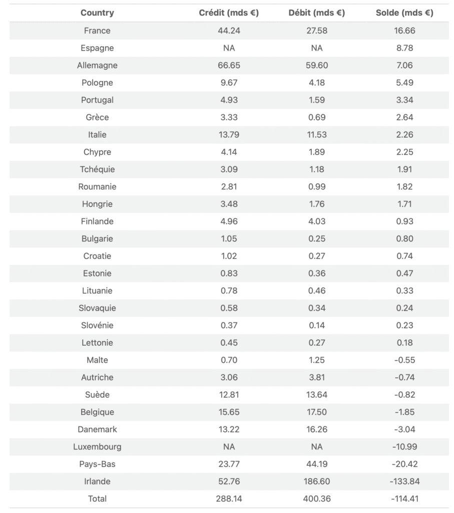Soldul comercial bilateral privind comerțul cu servicii cu Statele Unite, pe țări ale UE, 2023.