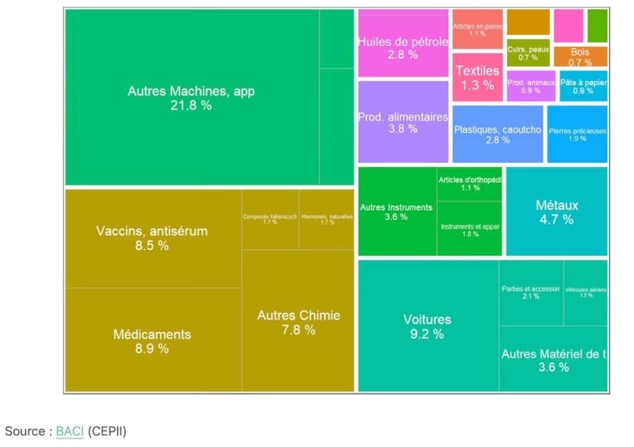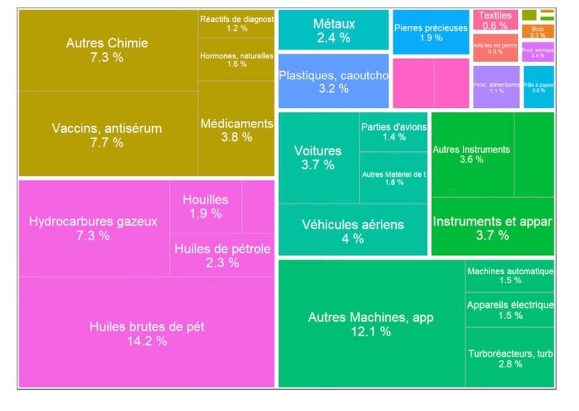 Compoziția sectorială a importurilor europene de bunuri provenind din Statele Unite.
