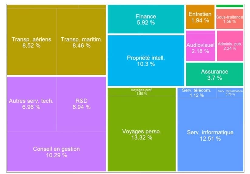 Compoziția sectorială a exporturilor de servicii ale UE către Statele Unite.