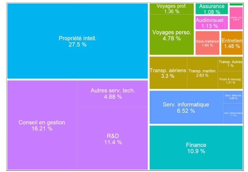 Compoziția sectorială a importurilor de servicii ale UE din Statele Unite.