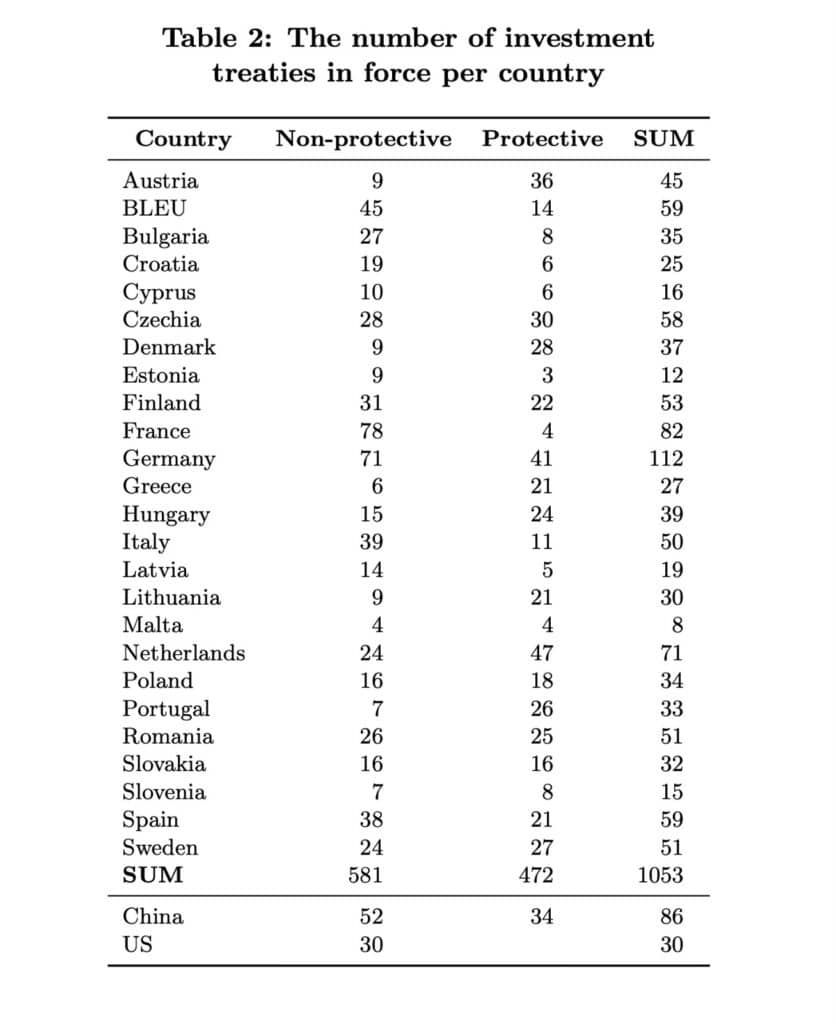 În al treilea rând, statele membre ale UE, China și SUA au mai multe sute de tratate de investiții cu țări cu rezerve deschise pentru cele cinci minerale pe care ne concentrăm. Prin urmare, nu este fezabil să se clasifice fără ambiguitate tratatele în funcție de gradul de protecție pe care îl oferă.